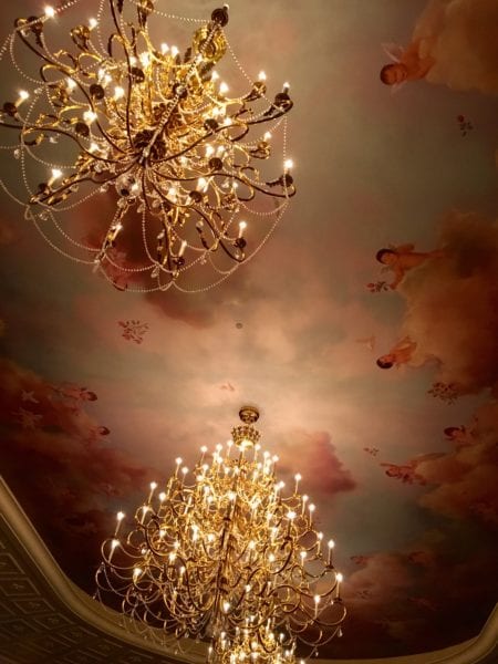 The ceilings are fantastic and beautifully painted. It gives you the sense of being in a room painted by a Renaissance artist or something: