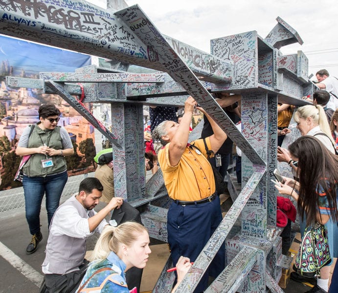 As part of a construction tradition signatures were placed on the beam of the tower, but at Galaxy’s Edge not only the construction workers were asked to partake, but every cast member at the Disneyland Resort was asked! Talk about a special opportunity!