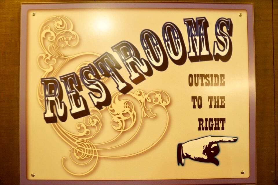 You’ll notice the Old-Style Restroom Signs hanging on the walls back down on the ground level. Like something from an old west saloon: