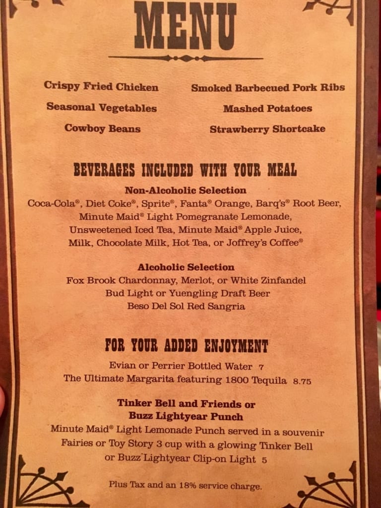 Let’s be clear, you don’t come to the Hoop-Dee-Doo Revue expecting a world-class meal as you can get from a place like California Grill or Jiko, but if you’re looking for some good ole fashion comfort food like Pork Ribs and Fried Chicken, and all-you-can-eat of it, then this is your place!