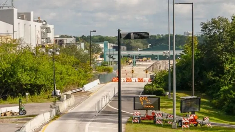 As you know, Disney has been making major changes to the Hollywood Studios Parking Lot including adding space, a new bus loop and a brand new toll entrance bringing guests into the park from a different direction. Now today we see that the original Hollywood Studios Parking Toll Plaza has been destroyed with it no longer in use.