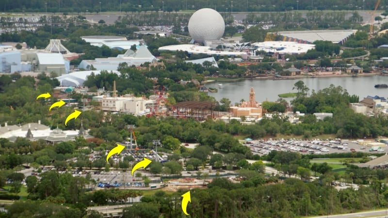 Lastly, heading up to Epcot we can see the final route running from the Riviera Resort to Epcot. There’s a row of Skyliner towers in place: