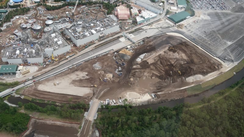 Here you can see the section where tons of dirt has been moved into behind Galaxy’s Edge and next to the paved section. It’s unknown what exactly is going there whether it will another part of the parking for Hollywood Studios or if it will be connected to the Star Wars Hotel construction that’s also going on next to here: