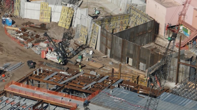 You can also see more of the Millennium Falcon attraction foundations being installed:
