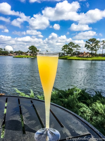 We got this party off right with a little Mimosa on World Showcase. Such an amazing view and it’s worth just grabbing a drink and slowing down to enjoy the scenery sometimes. I like mimosas and this was a pretty decent one, and it’s called: Mimosa Royale: Sparkling Wine and Orange Juice topped with Orange Liqueur. The sparkling wine was good, maybe could have used a touch more, but I liked the orange liqueur which they added, gave it an extra boost you don’t always have with a mimosa. Simple and refreshing!