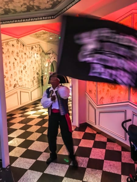 So the way Pirates Night Dinner works again, is that your group is assigned a restaurant out of the rotational dining restaurants to go to for dinner. Don’t worry, except for the atmosphere of the restaurant, all the Pirates Night dinner menus are the same no matter which place you get assigned to. Our restaurant chosen was Animator’s Palate, which we had already done on the first night of our cruise, but we loved the restaurant so much the first time, it was pleasure coming back!